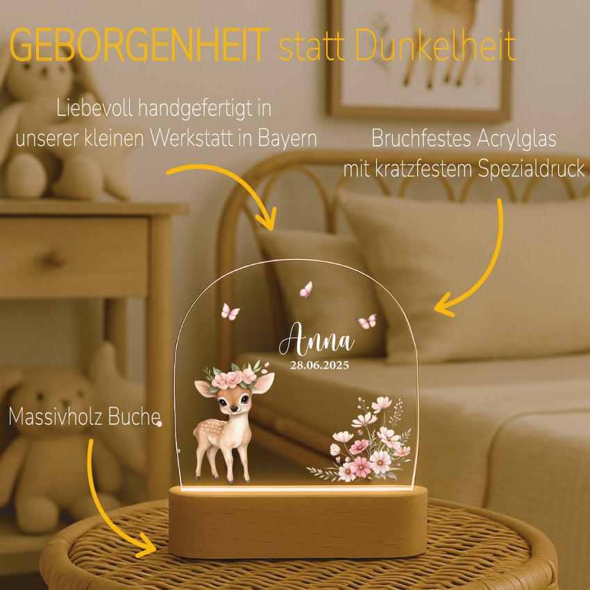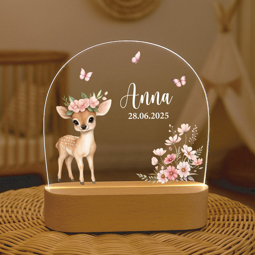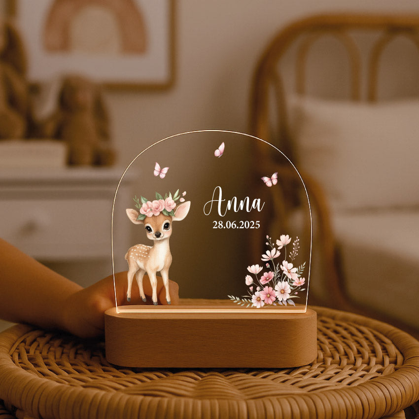 🌙 Personalisiertes Nachtlicht mit Reh & Name/Datum