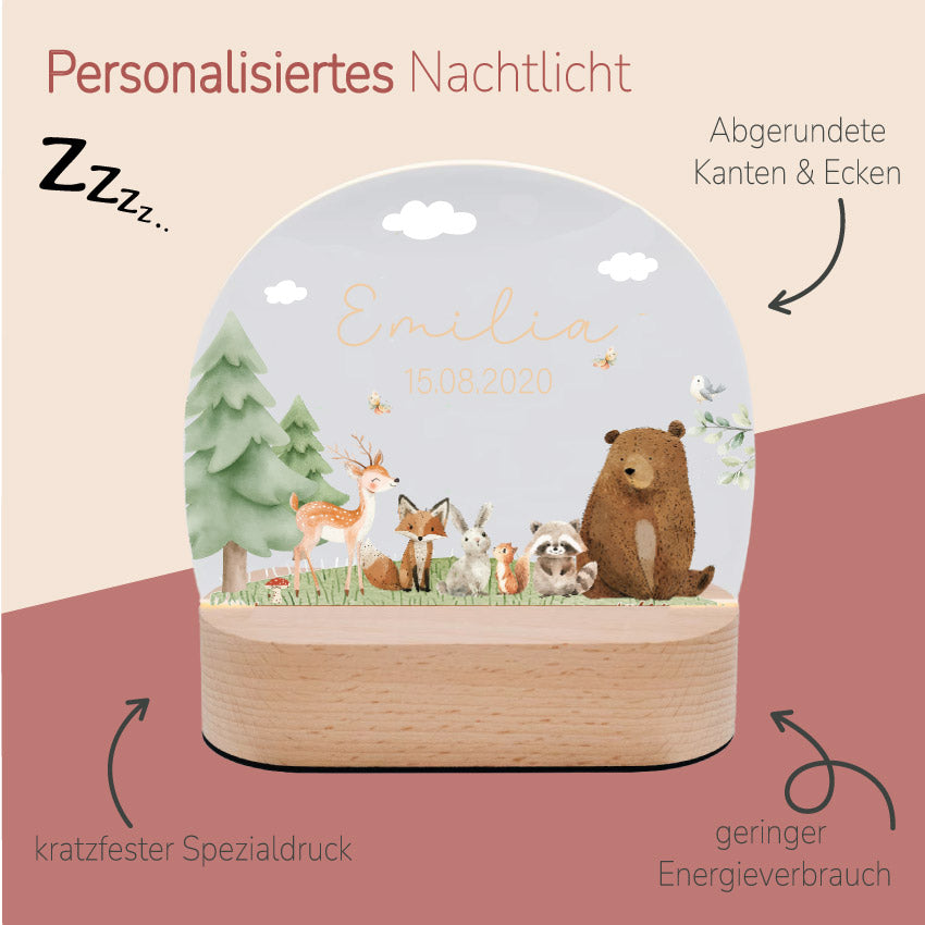 Nachtlicht Baby & Kinder personalisiert - Waldtiere