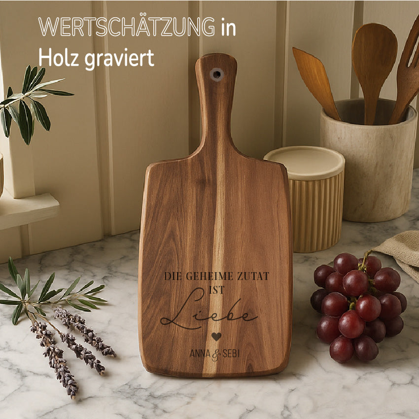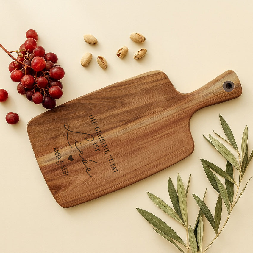 Jedes Schneidebrett wird mit hochwertiger Lasergravur personalisiert – präzise, langlebig und edel.