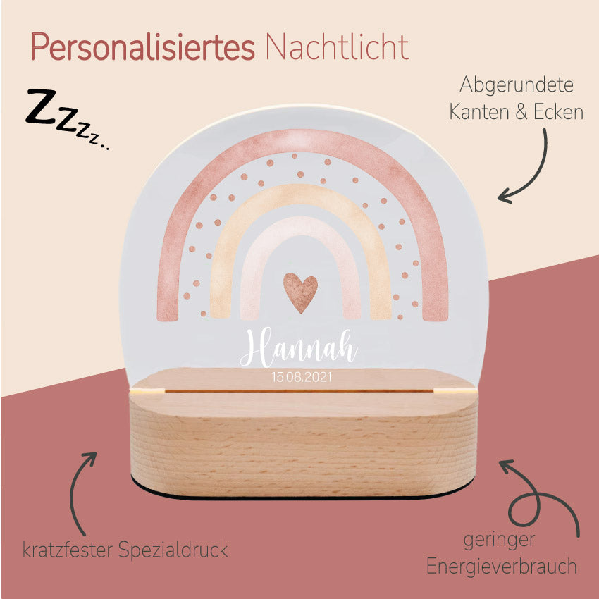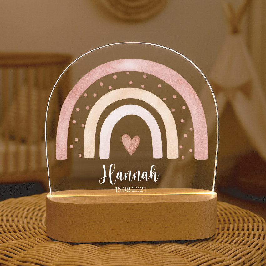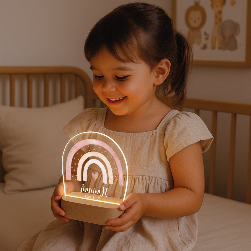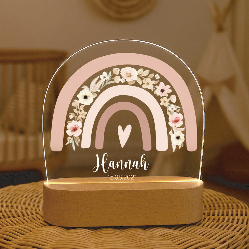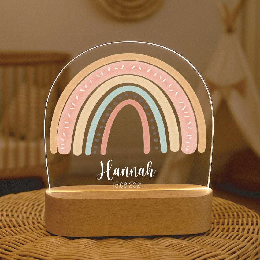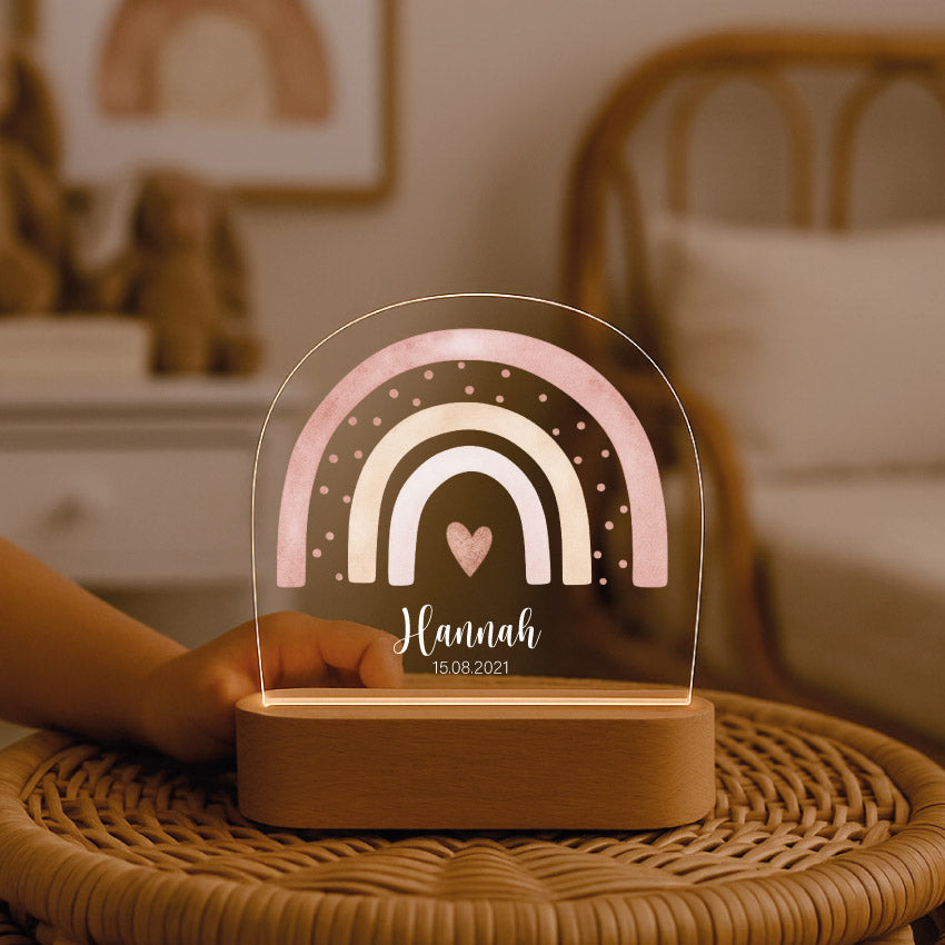 🌙 Personalisiertes Nachtlicht mit Regenbogen & Name/Datum